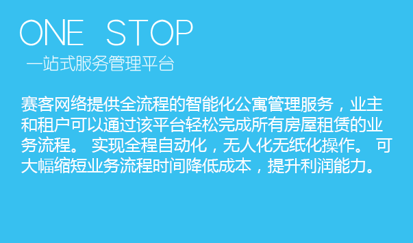 “物联网和业务平台一体化”理念是指全寓物联网智能硬件平台与租赁业务服务平台完美融合,在一个系统中实现全寓智能硬件的管理,全自动数据采集、融合业务管理、专家系统设计、自动催缴与支付、财务报表管理和等各种功能。在目前竞争日趋激烈的公寓市场中这将带给用户在体验提升、降低成本和提高效率上质的飞越。